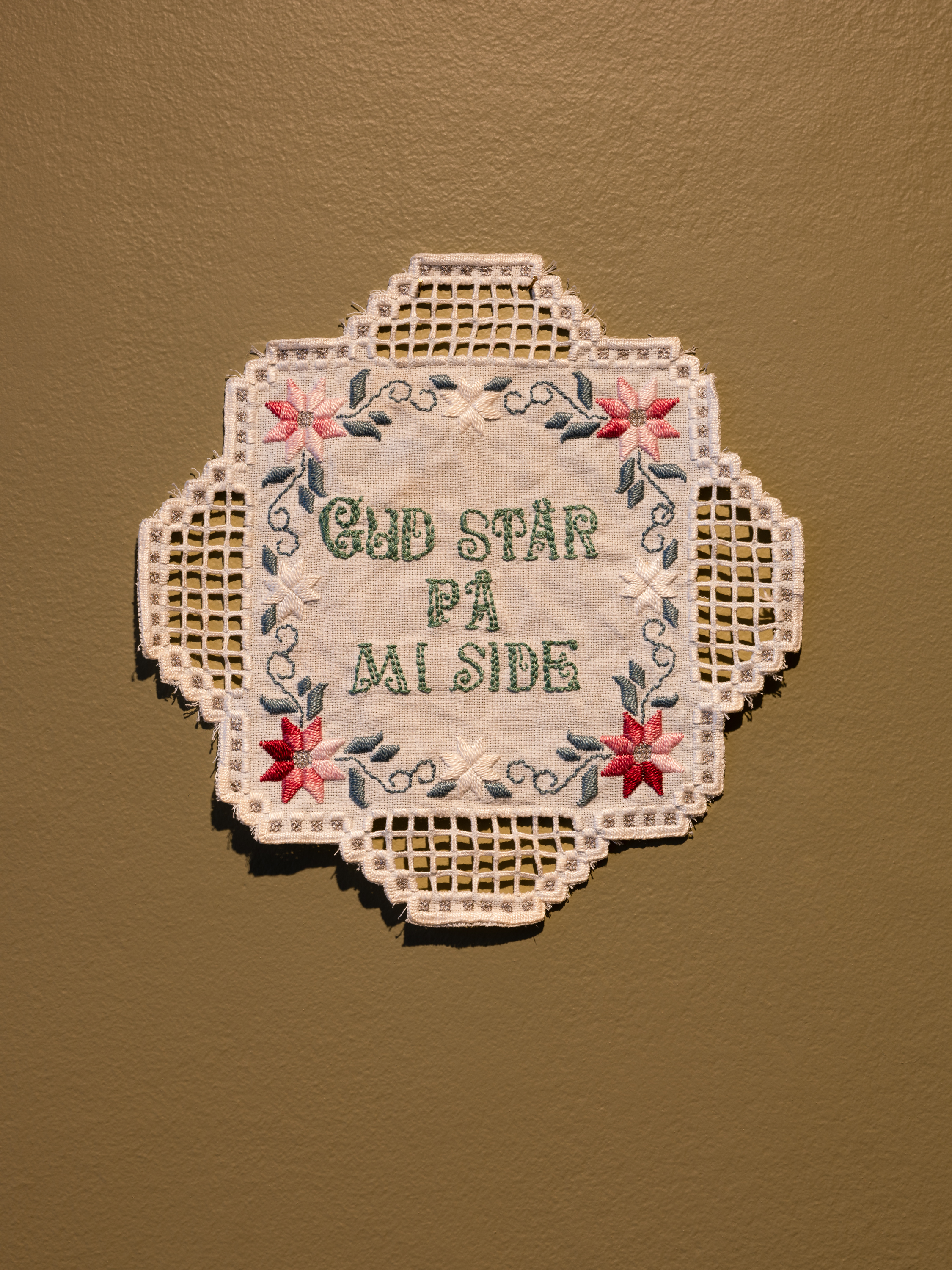 LAST NED - 1 - Markus Lantto «Gud står på mi side» (2026) broderi. Foto: Susann Jamtøy / Trøndelag senter for samtidskunst