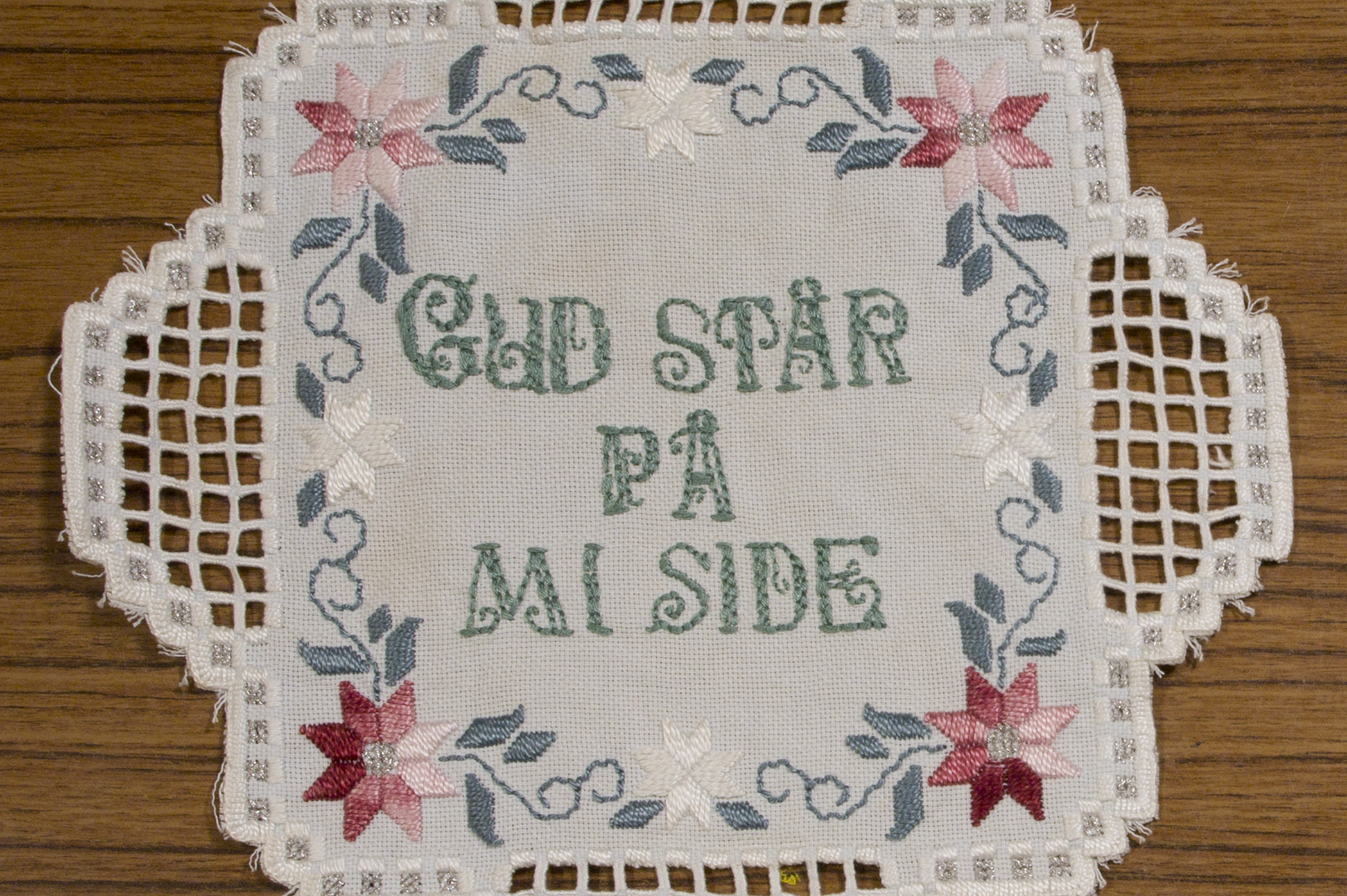 1 - Markus Lantto «Gud står på mi side» (2026) broderi, detalj.